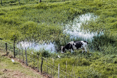 cercado por cercas e tomados por animais e pastagens. Como se não