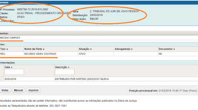 O processo no portal do Tribunal de Justiça da Paraíba tramita com o