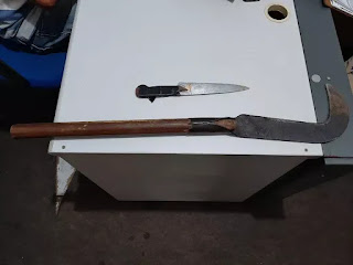 embora e retornou em seguida armado com uma foice e fazendo novas