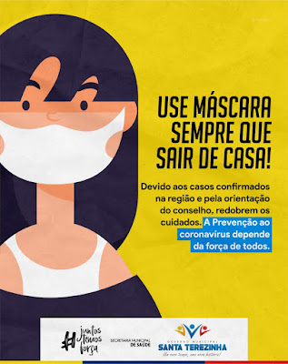 O prefeito de Santa Terezinha Vaninho de Danda decretou o uso de máscaras em todos os estabelecimentos na área do município, medida esta para intensificar o combate ao Covid-19. A partir de agora, só está permitida a entrada de consumidores e funcionários nos estabelecimentos de Santa Terezinha com o uso de máscaras, e depois do atendimento, higienização das mãos com álcool em gel.