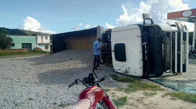 Uma carreta de placas de Sertânia tombou na tarde desta segunda-feira, 18 de maio próximo ao antigo posto de combustíveis na entra da cidade de Itapetim. Segundo informações o veículo carregado com brita perdeu o freio e acabou tombando.