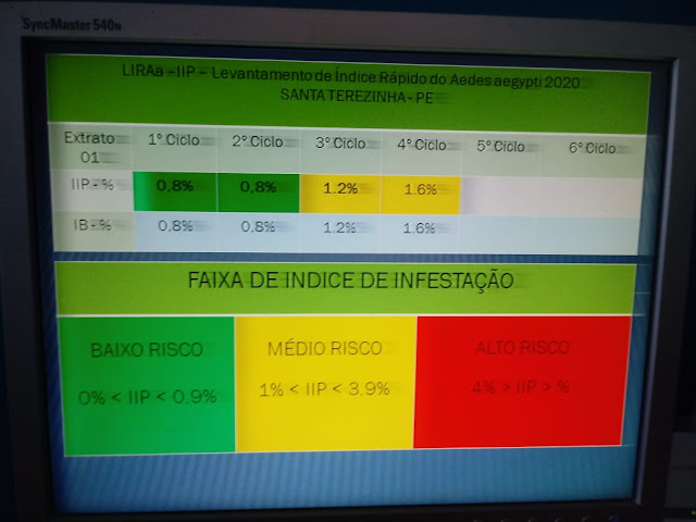 A equipe de endemias de Santa Terezinha com apoio da secretaria municipal de saúde e prefeitura concluiu o 3° ciclo de tratamento focal e o 4° ciclo do LIRAa do município, que foi realizado nos dias 29 e 30 de junho, sendo que o Índice de Infestação Predial (IIP) ficou em 1.6%, desta forma, a cidade continua em médio risco para as doenças causadas pelas arboviroses.