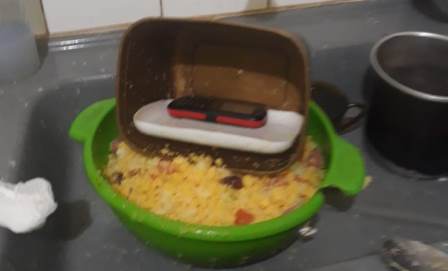 O efetivo do 23º BPM apreende um aparelho celular marca LENOX CX-904ª e a quantia de R$ 80,00 reais dentro de um fundo falso de uma vasilha plástica. Ao ser indagado o moto taxista, ele informou ter sido contratado apenas para fazer a entrega.