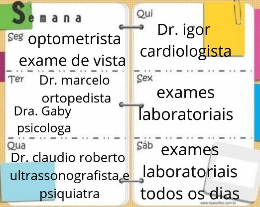 A CLIMED em Santa Terezinha divulgou nesta segunda-feira, 03 de agosto a agenda desta semana, com optometrista, ortopedista, psicologa, ultrassonografista, psiquiatra, cardiologista, além de exames laboratoriais todos os dias.