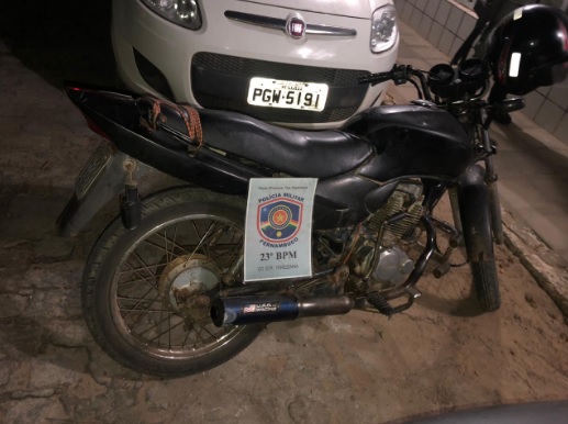 Durante abordagens nesse domingo, 2 de agosto em Santa Terezinha o efetivo do 23º BPM constatou que a motocicleta HONDA/CG 125 FAN, ano 2008, cor preta, placa HFZ-4564, estava com os números do chassi e do motor raspados.