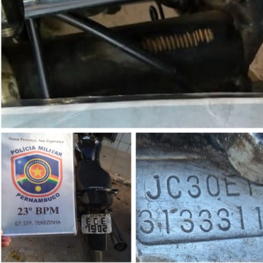 Após realizar uma consulta pela numeração do motor através do INFOCEG, o efetivo constatou se tratar de uma moto Honda CG 125 Titan KS, de placa DCT 7839, cor azul, ano 2003, da cidade de Ipero-SP.