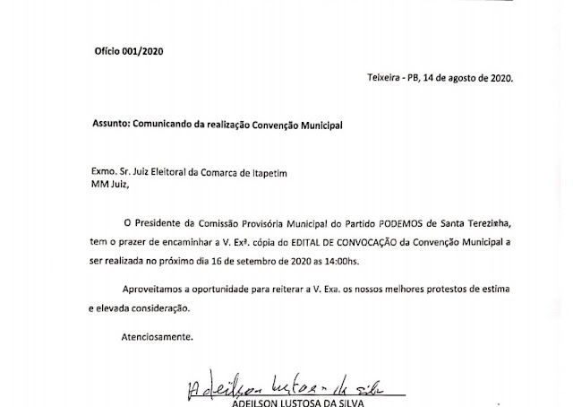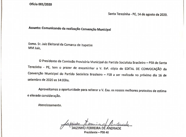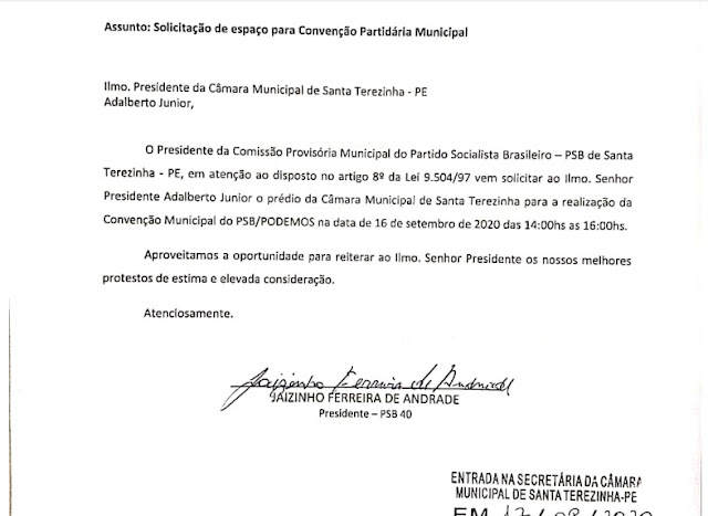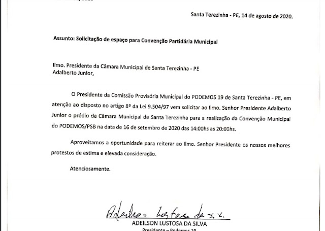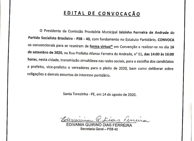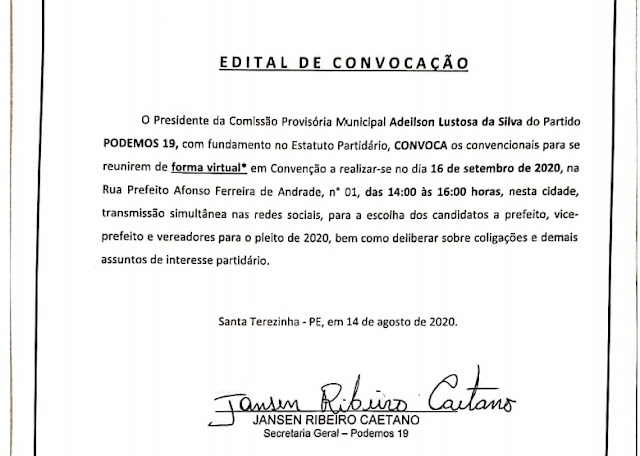 Os dois partidos marcaram suas convenções para o dia 16 de setembro, às 14hrs (duas horas da tarde).