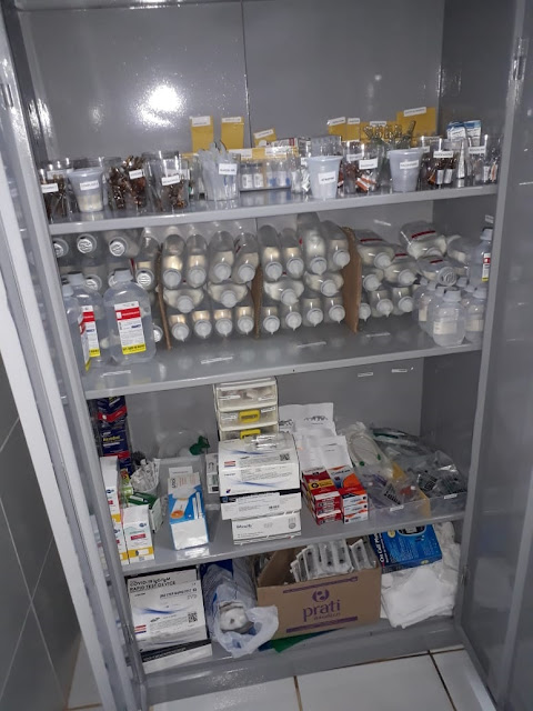 Notamos que o centro está bem munido com insumos farmacêuticos (remédios) tanto para o tratamento da Covid-19, tanto para outros casos em que os pacientes precisem do uso de medicamentos.