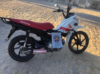A Guarnição Tática de Santa Terezinha realizava rondas com abordagens nessa quarta-feira, 26 de agosto quando se deparou na Rua José Romão de Araújo com um menor conduzindo a motocicleta Honda/Pop 110i, cor branca, ano 2016.