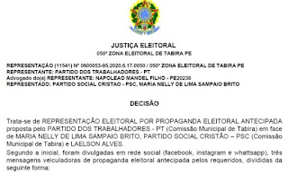 Tabira – Justiça determina remoção imediata da internet de conteúdo publicado pela pré-candidata Nelly e seu esposo.
