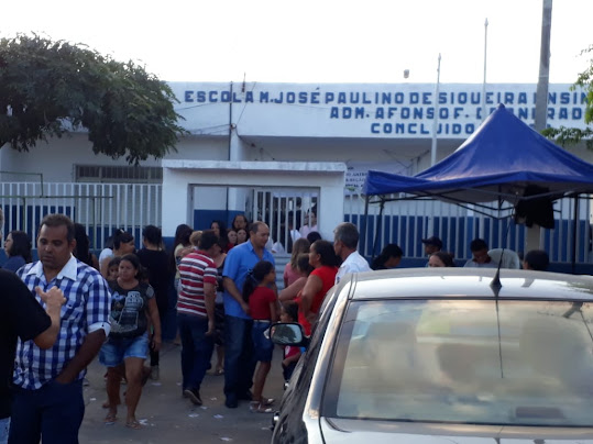 O povo na frente da Escola José Paulino de Siqueira, aguardando sair o resultado da eleição.