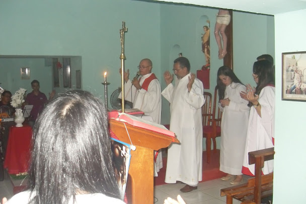 Padre Jorge Adjan celebrando na Capela da Vila do Tigre.