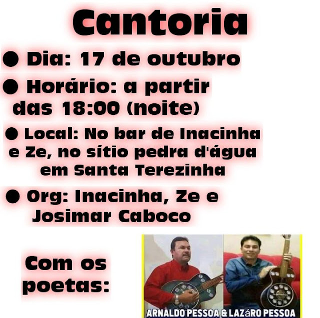 Atenção amantes de Cantoria – Inacinha promove evento no sábado (17) em Santa Terezinha. Notícias Por Blog do Pereira.Net Publicado em 14 de outubro de 2020 Ultima atualização 1 de fevereiro de 2022 0 162 Compartilhado Os amantes da boa cantoria, da voz, do repente e do improviso de Santa Terezinha estão convidados para essa noite maravilhosa da pura cultura nordestina. Vejam todos e tragam sua família. CantoriaEntretenimentoSanta Terezinha 0 162 Compartilhado FacebookWhatsAppTelegram