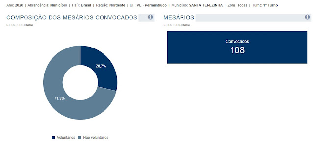 De acordo com levantamento feito pelo blog no Cadastro Eleitoral para as eleições deste ano em Santa Terezinha, 108 mesários foram convocados pela Justiça Eleitoral para trabalhar na eleição de 15 de novembro, menos que no pleito de 2016 onde foram 110. Dos convocados, 82,5% são mulheres e apenas 18,5% são homens.