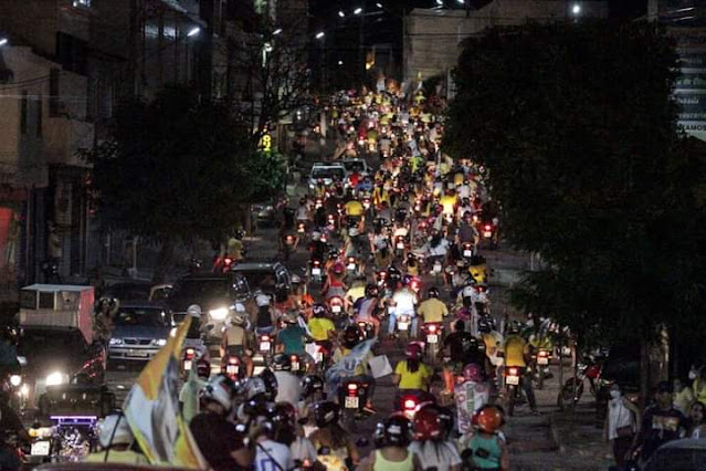 A carreata da Frente Popular de Afogados da Ingazeira, que aconteceu no último sábado (24), demonstrou que a Pandemia parece que não existe na cidade. Foi visto pessoas sem uso de máscaras, a baderna de motoqueiros, com um barulho infernal, passando por cima das calçadas, levando pessoas ao perigo de ser atropelada.