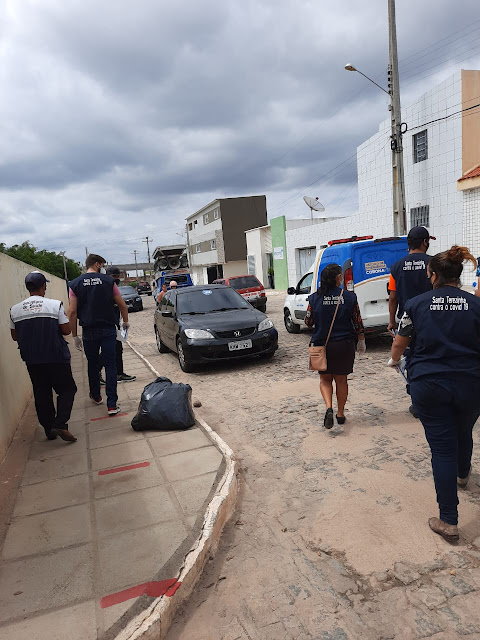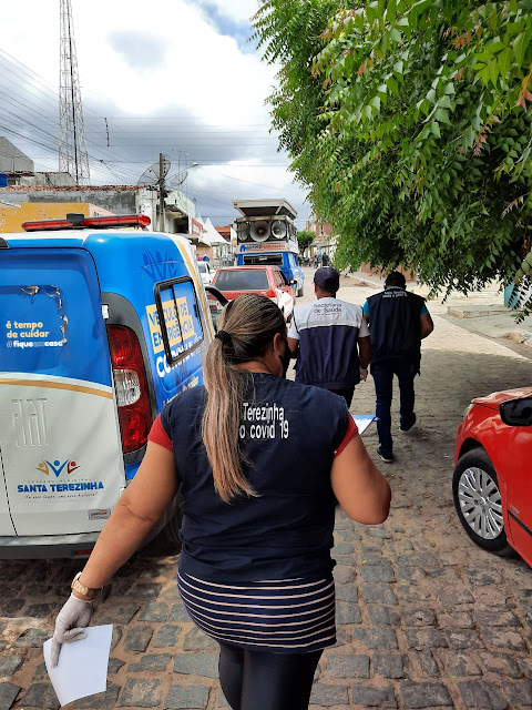 Saúde de Santa Terezinha faz alerta nas ruas da cidade para os crescentes casos positivos de Covid-19.