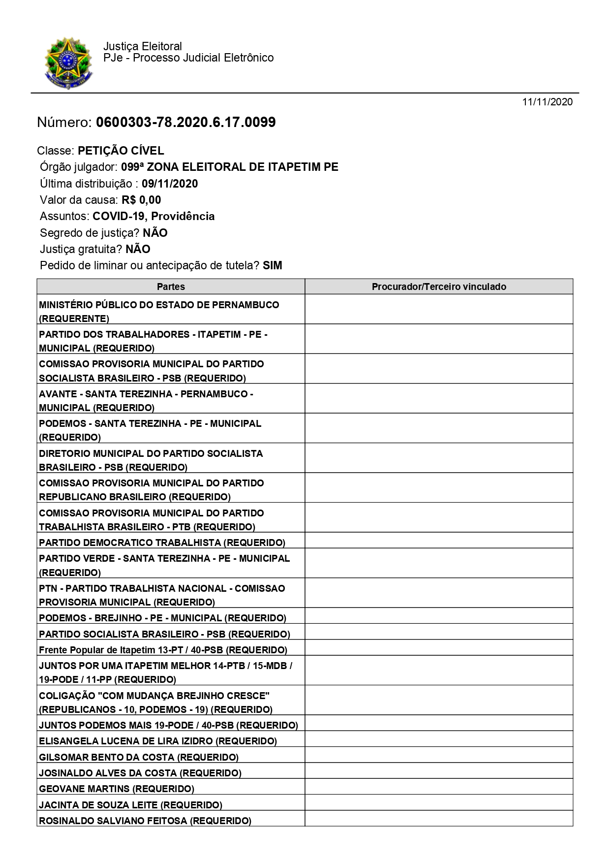 fizeram com que o Ministério Público Eleitoral pedisse através de tutela inibitória