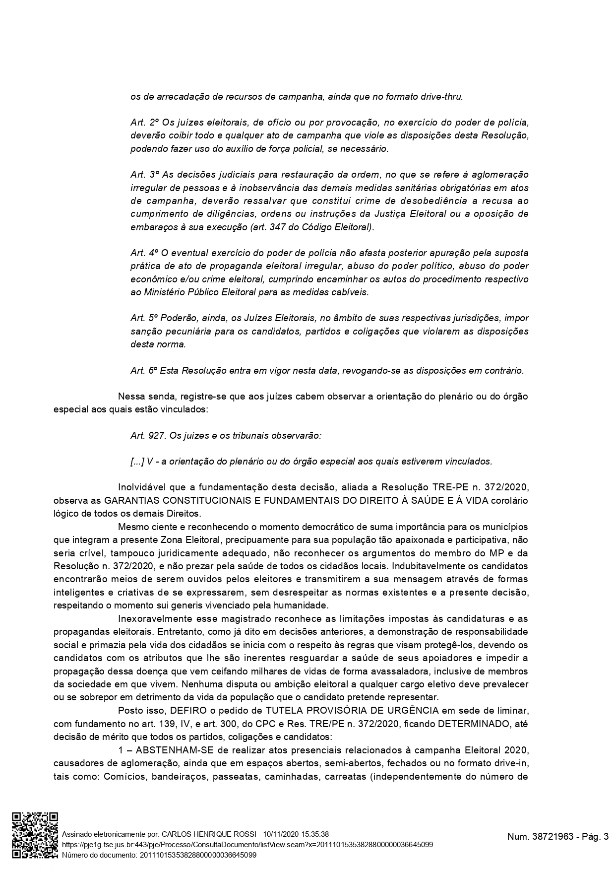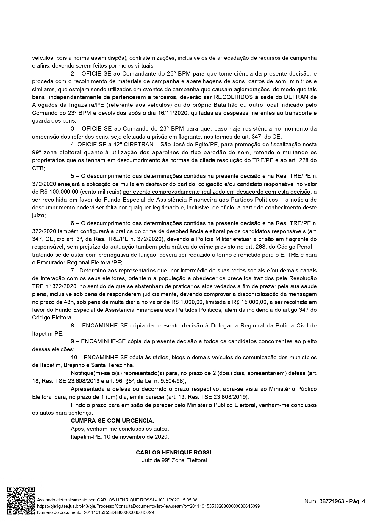 desta norma”, diz a decisão logo à baixo que levamos na íntegra para a população. A multa prevista é de cem mil reais.