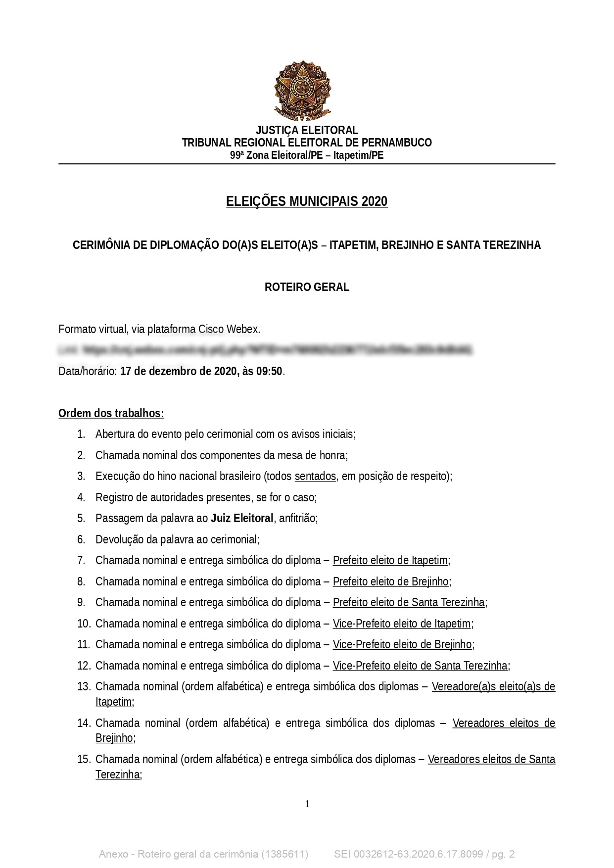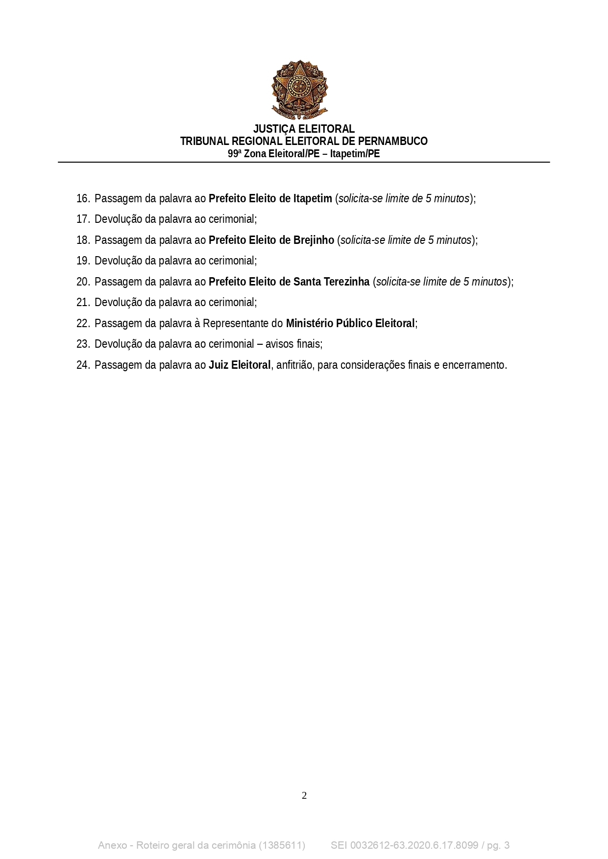 Confira à baixo o roteiro da diplomação.