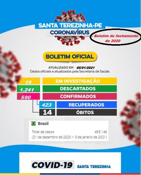 Nessa terça-feira, também foi divulgado o 1º boletim epidemeológico de 2021 com quatro (4) casos confirmados, um (1) descartado e seis (6) casos que estão em investigação.