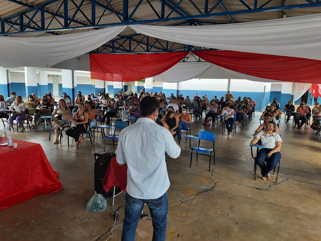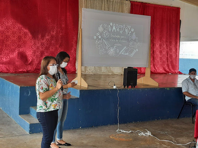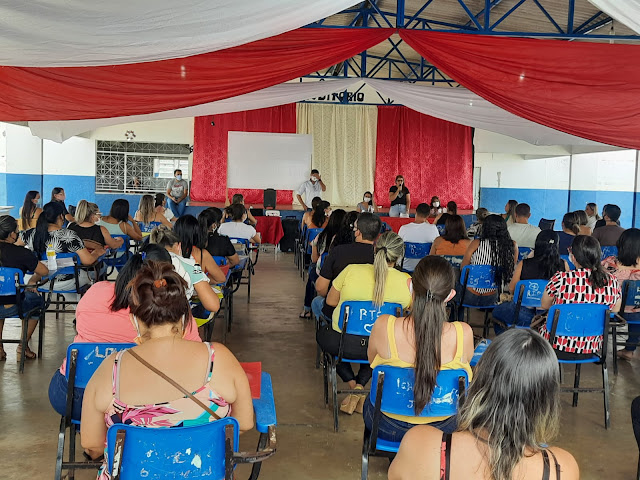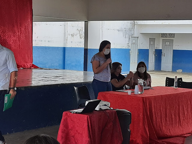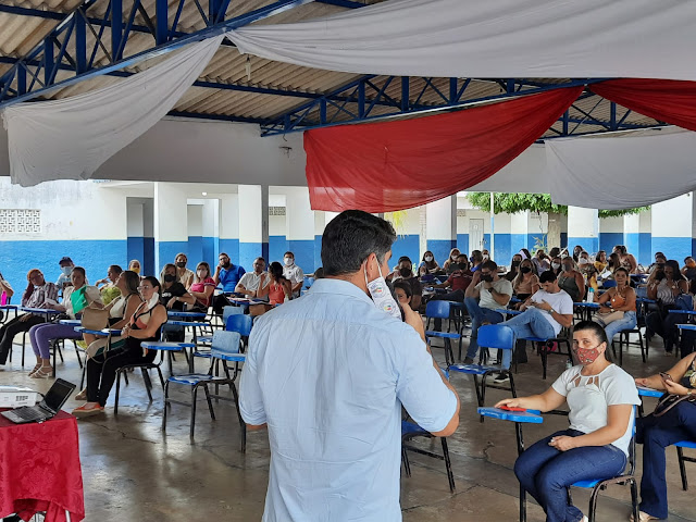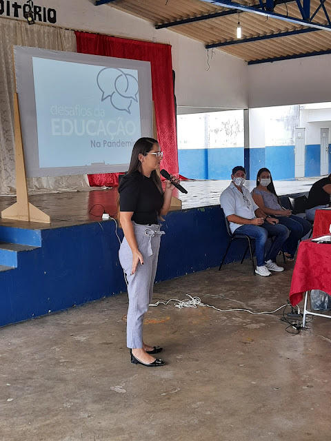 Após da acolhida do gestor da escola José Paulino de Siqueira, o professor Anderson Araújo, a secretaria de educação Liedja Lustosa e a diretora de ensino Sandra Lustosa falaram sobre os desafios que vinrão ao logo do ano, já que a pandemia  ainda não está controlada.