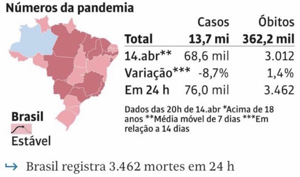 Pernambuco não apresenta evolução e a Covid é uma das mais altas, aponta Folha de São Paulo.