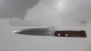Por volta das 15h30min de ontem (15) a GT ordinária foi acionada pela permanência da 2ª CPM para averiguar uma ocorrência de porte de arma branca. Chegando ao local, o policiamento encontrou o imputado bastante alterado, sendo necessário o uso da força para contê-lo. Com ele foi encontrado uma faca peixeira de 12 polegadas.