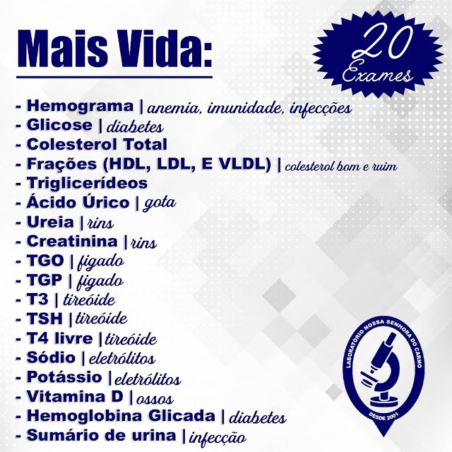 O SegVida em Santa Terezinha comunica aos seus usuários que fez uma parceria com um dos melhores laboratórios da região, o Nossa Senhora do Carmo e está com uma surpe promoção em seus exames que vai até o dia 31.05.2021.