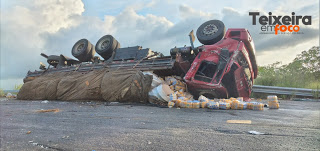 O acidente ocorreu por volta das 15h30min quando o caminhão seguia de Arapiraca, em Alagoas à Fortaleza. Ao passar no Km, o motorista perdeu o controle do veículo. Não se sabe os motivos. Em imagens feitas pelo Teixeira em Foco é possível ver que parte da carga de sucos ficou espalhada pela pista. A asseguradora e a Polícia foram para o local evitando que pessoas pegassem a carga.