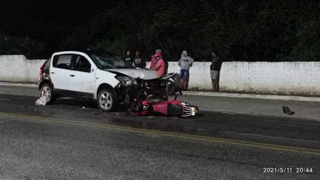 Um acidente envolvendo um veículo e uma moto nessa terça-feira (11.05), no bairro São José, em Imaculada, na Região Serrana, deixou uma pessoa ferida. Segundo as informações o condutor do veículo teria invadido a contramão colidindo fortemente com um casal que trafegava na rodovia.