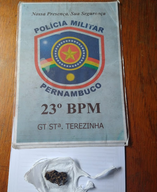 Durante a manhã dessa quinta-feira, 20 de maio por volta das 09h10min a GT ordinária de Santa Terezinha realizava rondas quando visualizou um indivíduo em atitude suspeita e ao ser feita a busca pessoal nele, foi encontrado no bolso de sua calça uma porção de maconha, pesando 4 gramas. O imputado informou que era usuário e a droga seria para seu consumo.