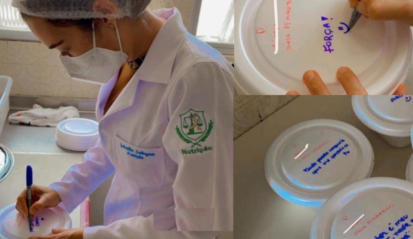 A ideia consiste em levar frases de estímulo, incentivo e força nas embalagens que servem as refeições aos pacientes. “Iniciamos como essa pequena demonstração de cuidado e carinho para nossos pacientes internados nas alas, principalmente aos pacientes com COVID-19, que tem mais da nossa atenção devido a todo processo vivido”, explica.