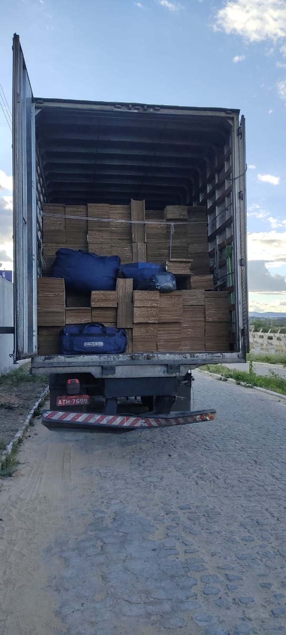 Ao abrir o baú do veículo a carga de papelões estava dentro, pesando aproximadamente 7.040 KG, com a logomarca da GRANJA ALMEIDA – São Bento do Una -, avaliada conforme notas fiscais em: R$ 40.403,23 e R$ 7.184,87, totalizando R$ 47.588,10.