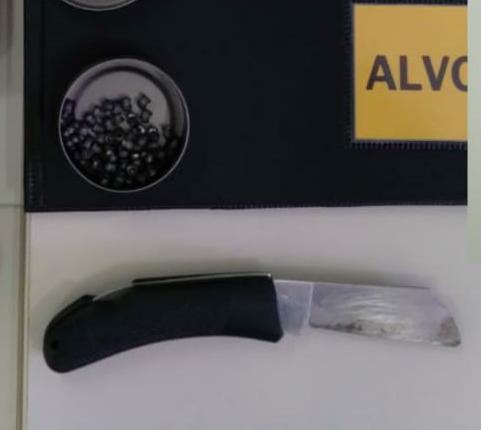 – 01 (um) recipiente pequeno contendo munições para arma de pressão;