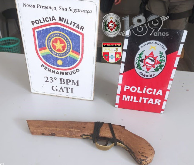 Nesse momento, os policiais da PMPE já estavam em diligência com a PMPB, saíram no intuito de localizar o suspeito e apreender a referida arma.