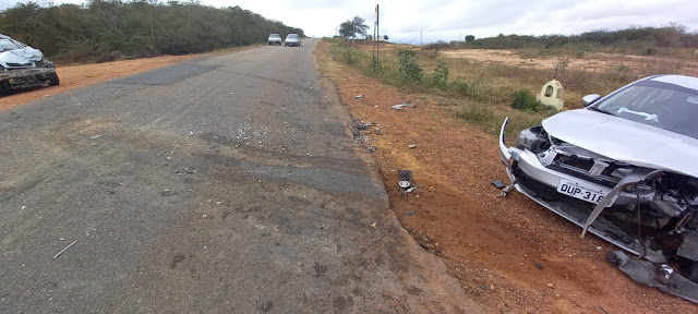 Carros batem de frente próximo ao Açude Novo em Santa Terezinha.