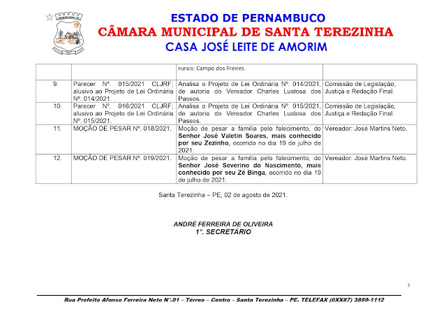 O presidente Adalberto JR iniciou a sessão e por volta das 19h30min deu ela por encerrada pela falta do quórum. Na palta estavam projetos em caráter de urgência, como leis ordinárias eviadas pelo executivo municipal, dentre elas a alteração do PPA (Plano Plurianual) e diretrizes orcamentárias do município, também as diretrizes para elaboração da lei orçamentária para o ano que vem.