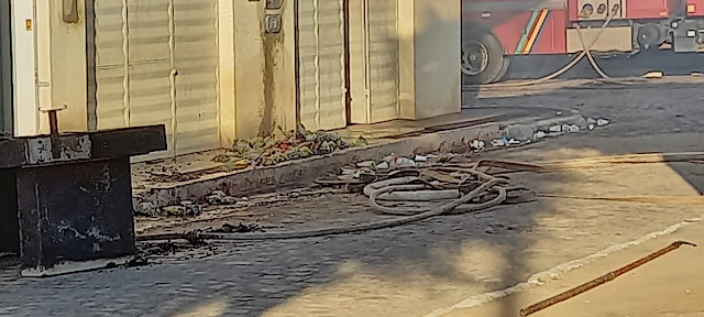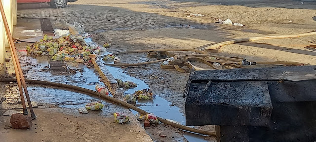 Bombeiros e populares viraram a noite combatendo as chamas, mas parte da mercadoria que estava no local ainda queima. Paredes do andar de cima foram abertas para ventilacão, e os pipas continuam a jorrar água no predio.
