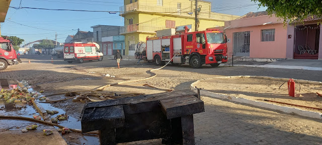 O trabalho para apagar o fogo que começou no início da tarde dessa sexta-feira (06) em um dos depósitos do Supermercado Compre Bem ainda dura até a manhã deste sábado, 07 de agosto.