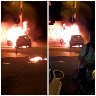Um incêndio a veículo foi registrado por volta das 19h30min (sete e meia da noite), nas proximidades do Guedes Shopping aqui em Patos.
