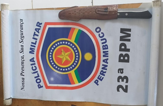 Durante a manhã dessa segunda-feira, 09 de agosto o Efetivo do 23º BPM ao realizar patrulhamento pelo Conjunto Habitacional visualizou um indivíduo em atitude suspeita. Ao realizar a abordagem, foi encontrada em sua cintura, uma faca peixeira de 6 polegadas.