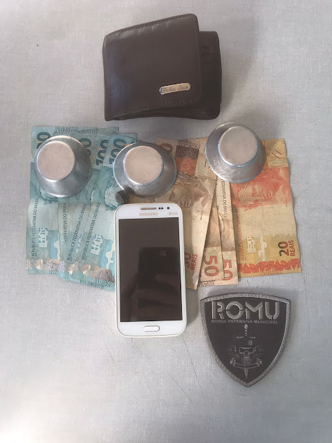 Ao ser abordado foi encontrado com o imputado os objetos utilizados para a realização do jogo de azar, o qual foi apreendido pela Guarda Municipal, e a quantia de R$ 500,00 (quinhentos reais) que foi devolvida à vítima.
