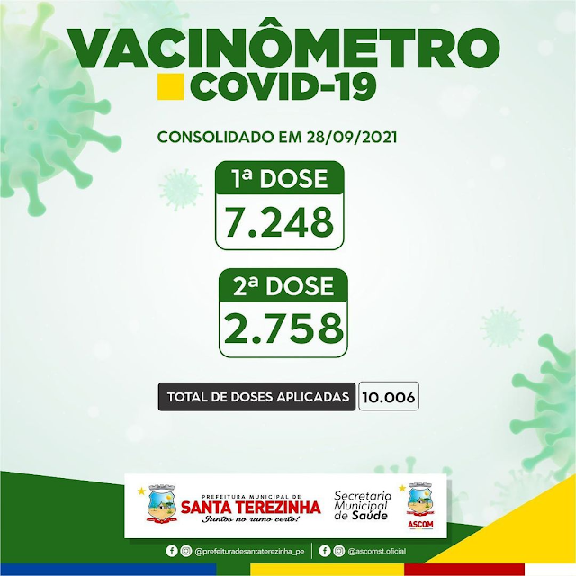 De acordo com relatos de internautas, mesmo sem divulgar a chegada de novas doses da Astrazeneca que faltou no país inteiro, o serviço de imunização Santa-Terezinhense aplicou doses da vacina no último sábado, dia ‘D’ de vacinação contra a Covid-19, para quem já tinha tomado a 1ª dose e estava com a 2ª dose da vacina atrasada. A expectativa é de que a vacinação avance na 2ª dose, pois o município está mais próximo de chegar aos 100% da população vacinal com a 1ª dose.