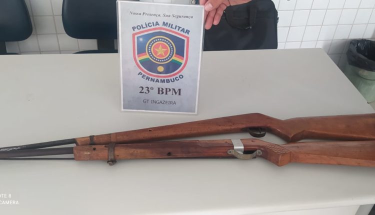 O efetivo do 23º BPM realizava patrulhamento na manhã desse sábado (26.02) quando recebeu uma ligação telefônica, informando que na zona rural de Ingazeira havia dois homens caçando com espingardas artesanais. O policiamento dirigiu-se até o endereço e localizou os indivíduos, mas eles ao perceberem a presença do efetivo, evadiram-se em uma motocicleta e abandonaram as espingardas. As armas foram apreendidas e encaminhadas à DPC local.