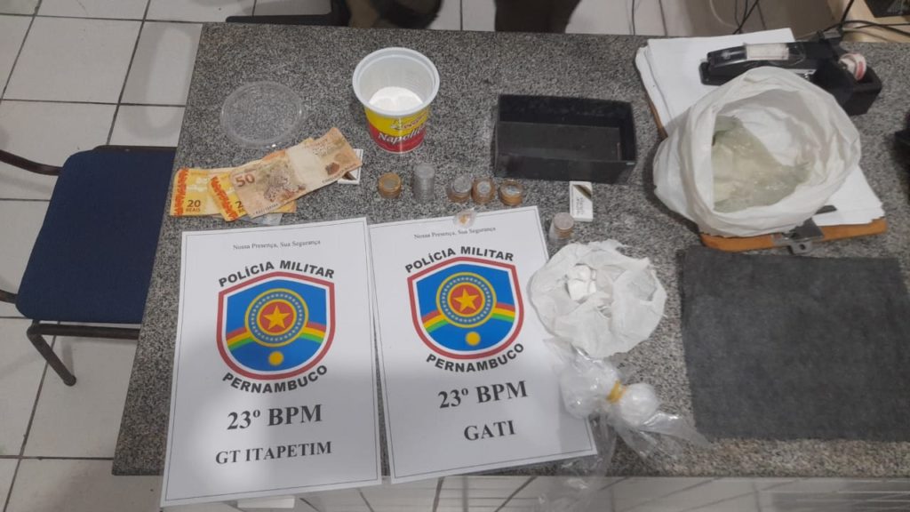 Por volta das 15hrs desse sábado (05.03) o efetivo do 23ºBPM, após levantamentos da equipe Malhas da Lei sobre possível tráfico de drogas no Bairro Paulo VI em Itapetim, dirigiu-se até o local e visualizou dois indivíduos em frente à residência de uma mulher com pacotes nas mãos e que ao avistarem o efetivo empreenderam fuga, não sendo possível alcançá-los. A mulher encontrava-se no local e permitiu a entrada do policiamento na residência.