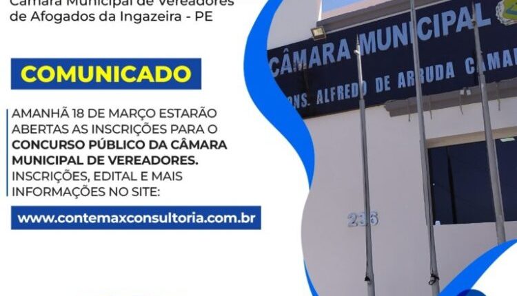 Concurso público da Câmara de Vereadores de Afogados da Ingazeira abre inscrições nesta sexta (18).