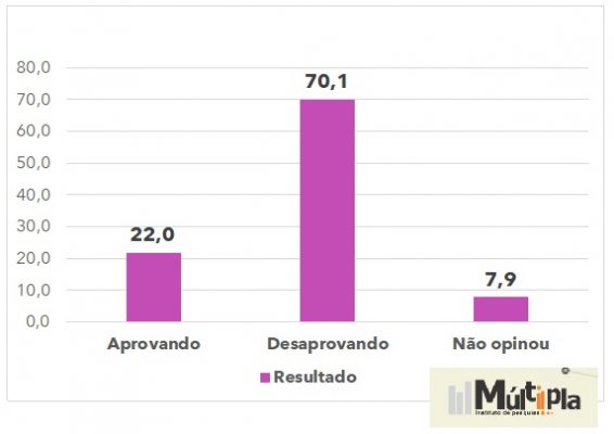 Já em, relação ao presidente Jair Bolsonaro, a reprovação chega a 70,1%. Apenas 22% aprovam o governo e 7,9% não opinaram. Assim como na pergunta sobre Paulo a pesquisa faz uma pesquisa direta: você aprova ou desaprova o governo Bolsonaro?
