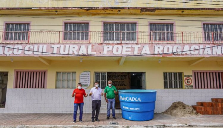 O prefeito Adelmo Moura esteve vistoriando o serviço, ao lado do secretário de Cultura, Ailson Alves, e do coordenador da Casa das Juventudes, Benone Henrique.