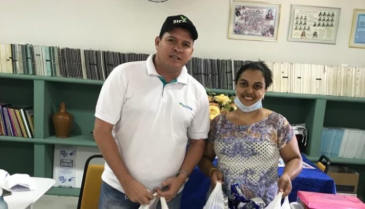 Santa Terezinha – Gerente do Sicoob e amigos fazem doação de ovos de páscoa para as crianças.
