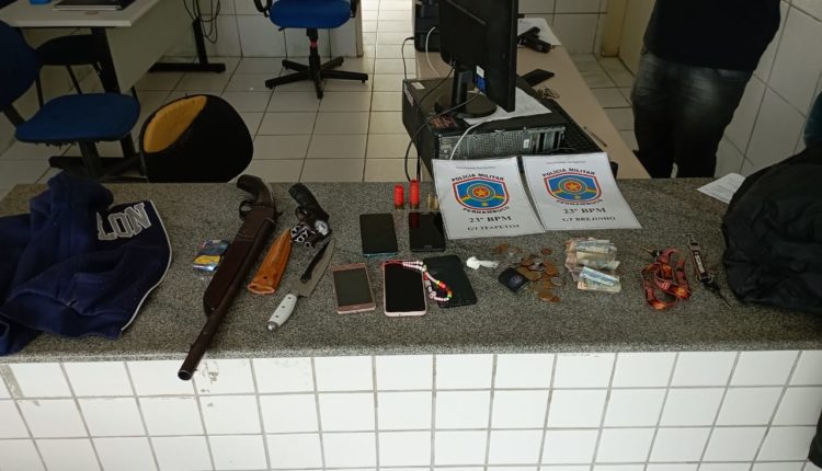 Uma vítima chamou a polícia na tarde desse sábado (30.04) informando que estaria sendo ameaçada de morte. O efetivo tomou conhecimento que havia acontecido um roubo no Mercadinho Bom Preço na cidade de Brejinho, onde dois (02) elementos armados com armas de fogo, sendo uma espingarda calibre 12 e um revólver com 02 munições intactas calibre 38 chegaram em uma motocicleta preta, anunciaram o assalto levando todo o dinheiro do caixa, como também, o dinheiro e celulares das outras vítimas presentes no local e ao saírem, ainda efetuaram um disparo com a espingarda, empreendendo fuga sentido Itapetim.